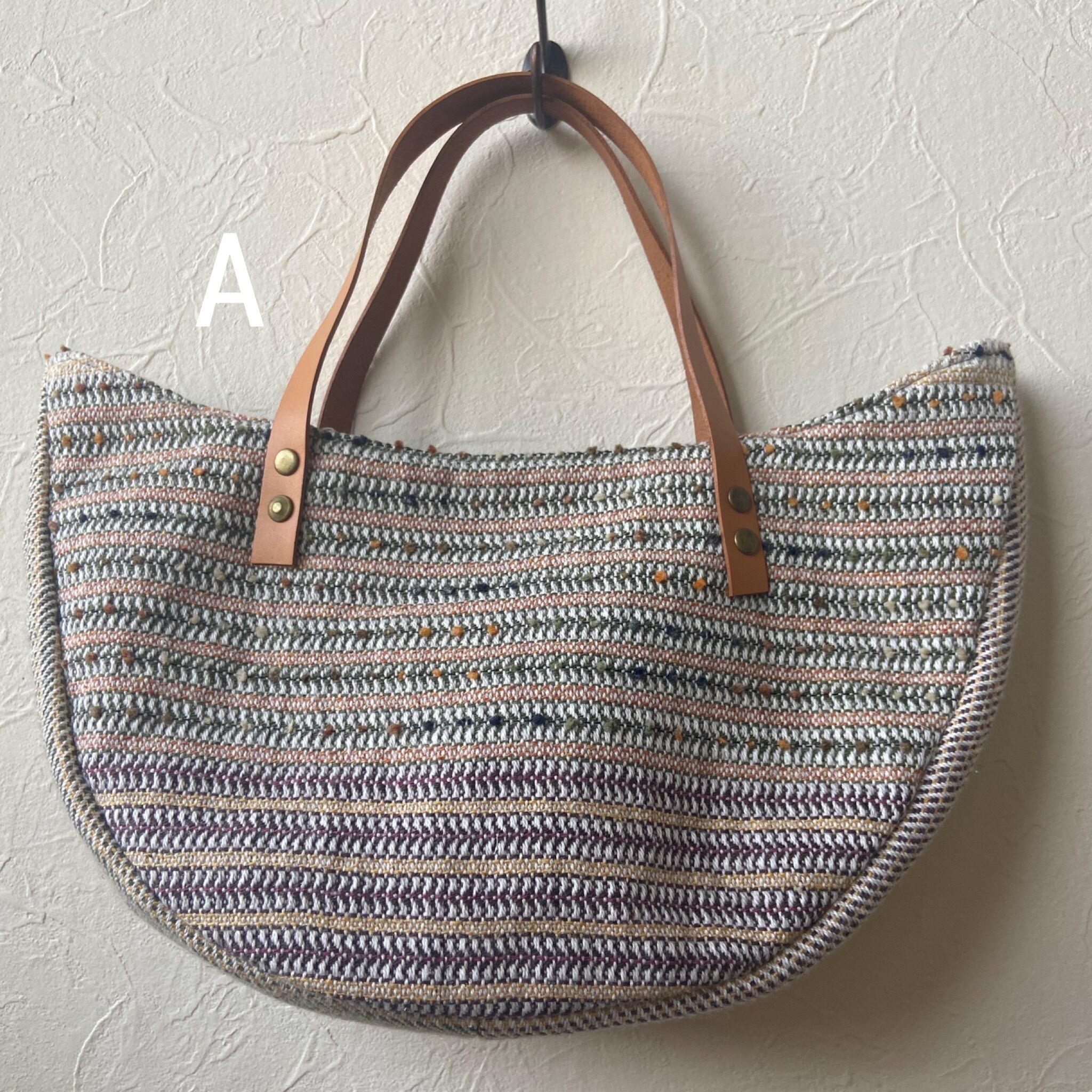 ランダムに織った生地のため、表裏マチ部分全て模様が異なります