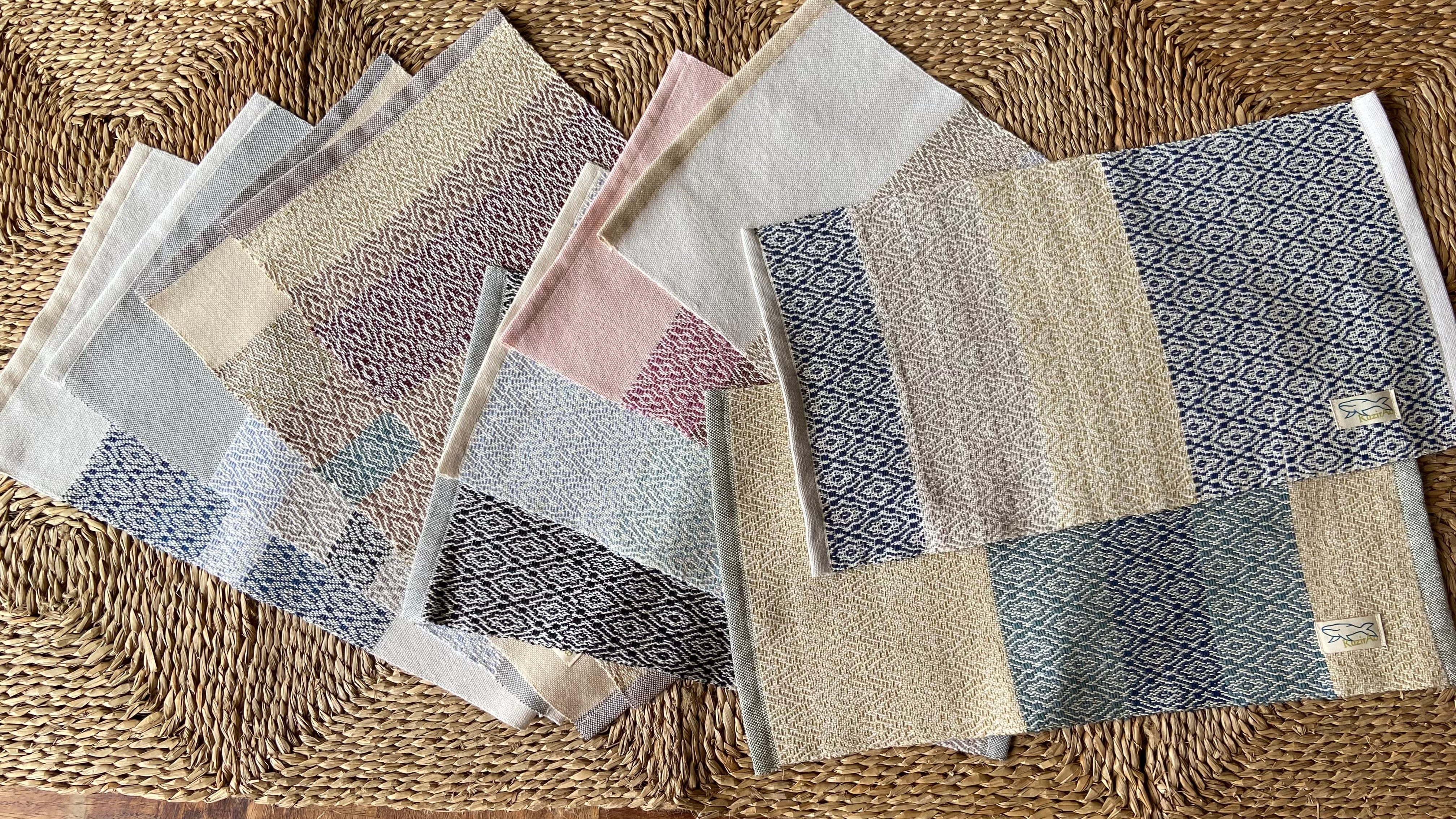 緯糸に木綿、麻、紙と木綿の混紡などの糸を用いています