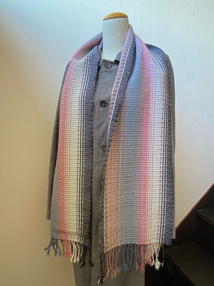 アシンメトリーな縞なので巻き方によって表に出る色が変わります。
