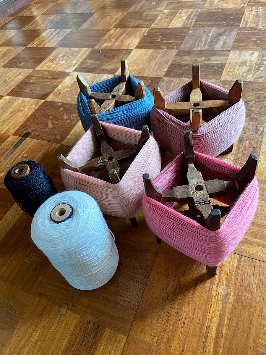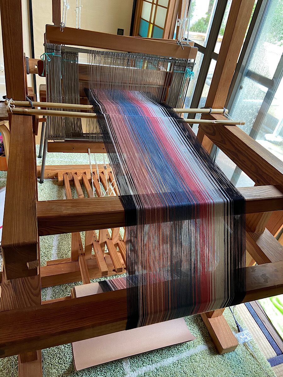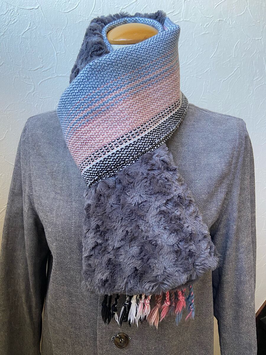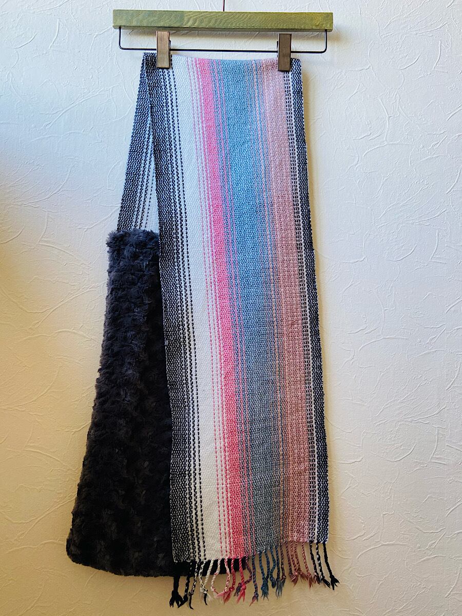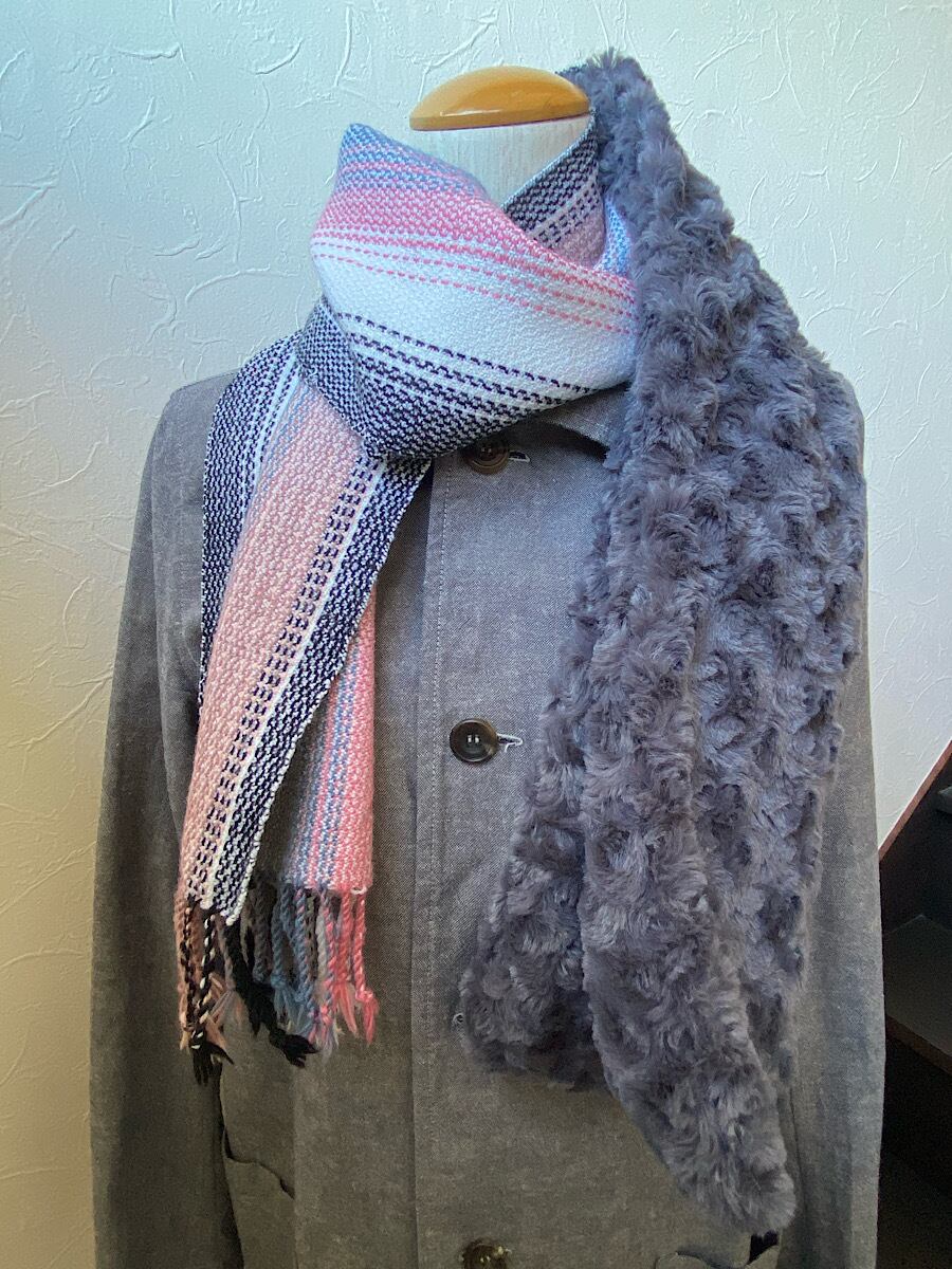 アシンメトリーな縞なので巻き方によって表に出る色が変わります。