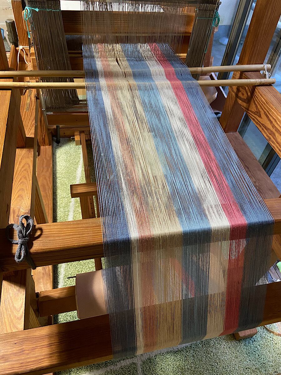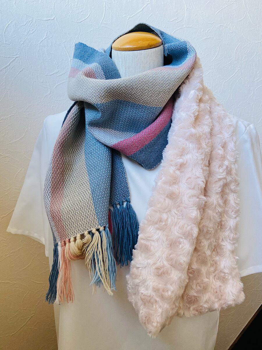 アシンメトリーな縞なので巻き方によって表に出る色が変わります。
