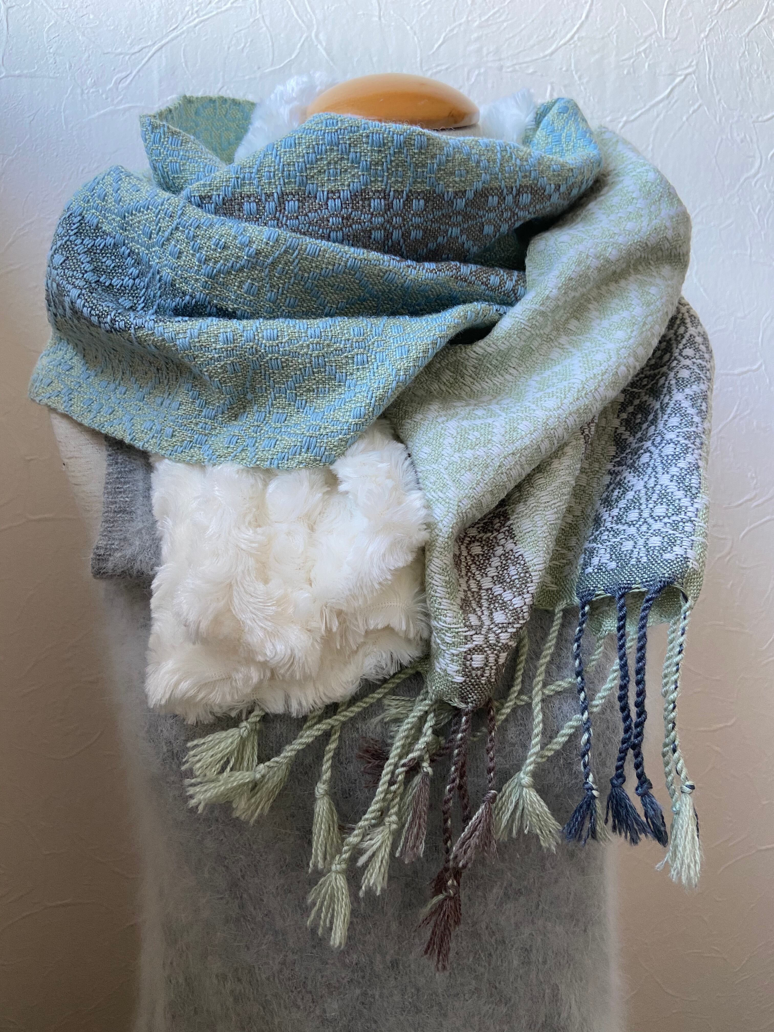 経糸はクサギで染めたブルーグリーンをベースに